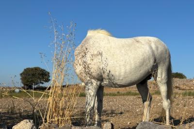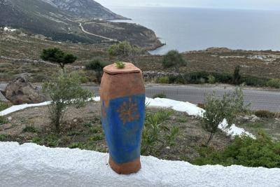 With a deep personal connection to Patmos that dates back to my youth, I derive insight from decisive and transformative spiritual experiences during my stay at the Spring of Life monastery, the place where the inspiration for this exhibition originated. My work is influenced by the island's cosmopolitan aura — the architecture, the medicinal herbs, the healing saltiness of the air, and the peculiar observations that arise from the meeting of opposing worlds. It focuses on the healing process, both physical and spiritual, and through the fusion of sculpture, painting, photography, embroidery and drawing I abstractly convey my relationship with healing and the traditional medicine I have studied. During my recent stay at the monastic seat of the dancer monk Alexandros, I had the opportunity to experience aspects of monastic life and to witness indescribable skies that I attempted to capture in some of my photographs. I also had the chance to connect deeply with my ''quiet neighbors'' , the most respectful gentle beings - horses.